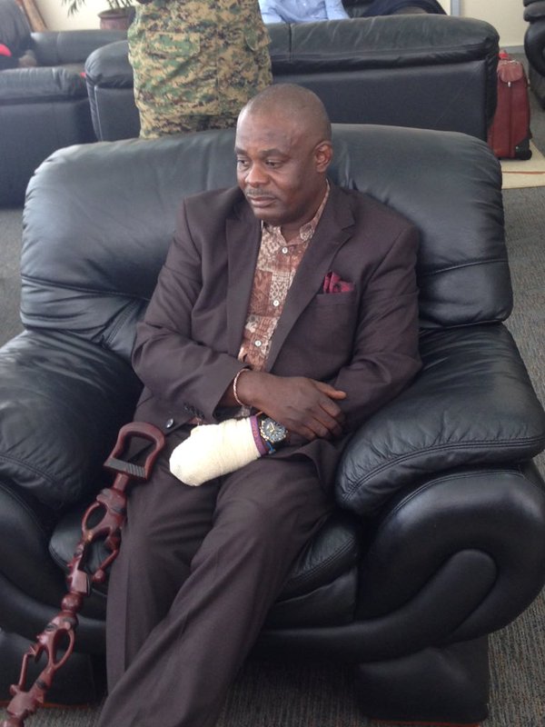 The Kamuswaga is flying to Germany for treatment after he was injured in a scuffle with the VP's security officers.